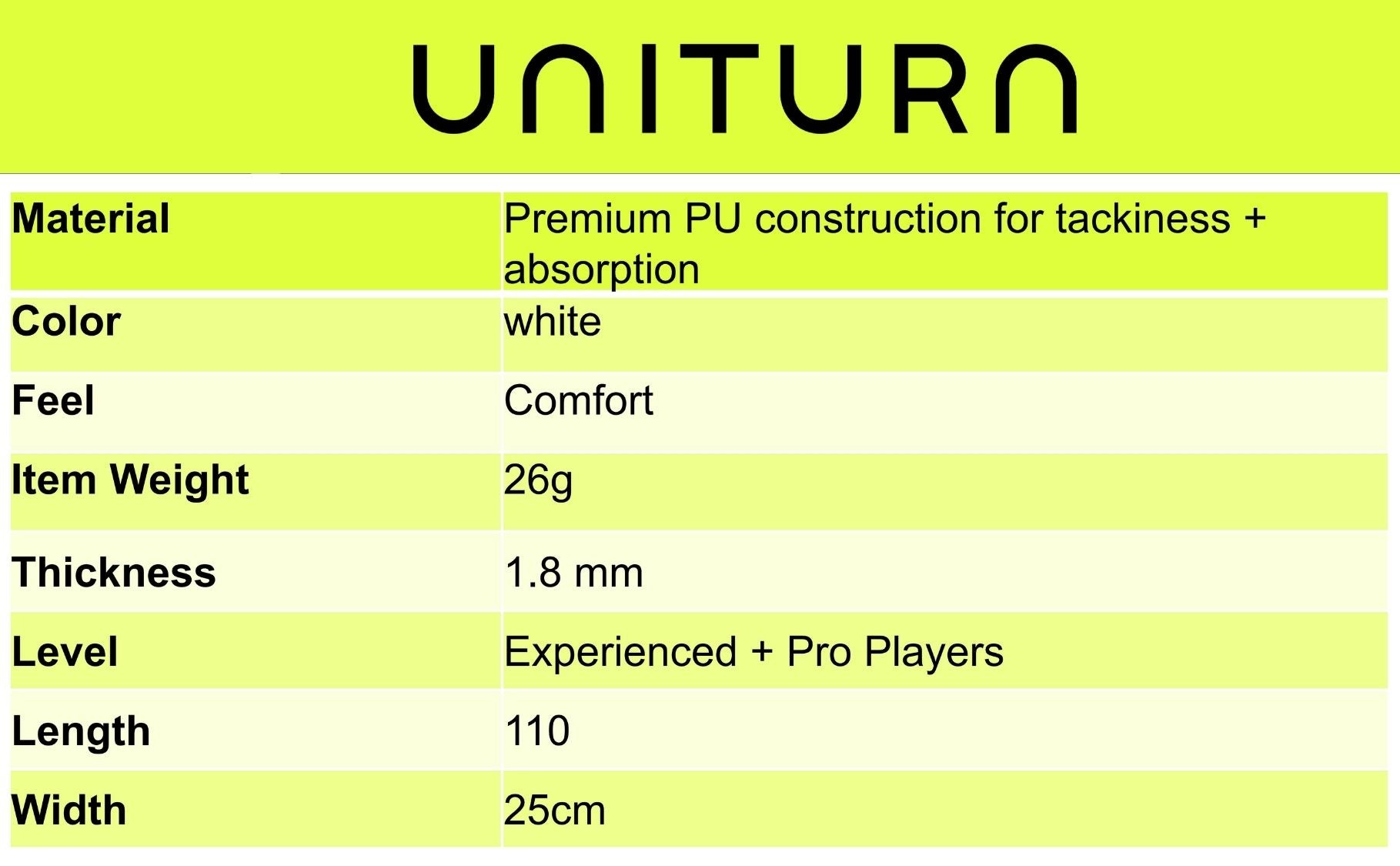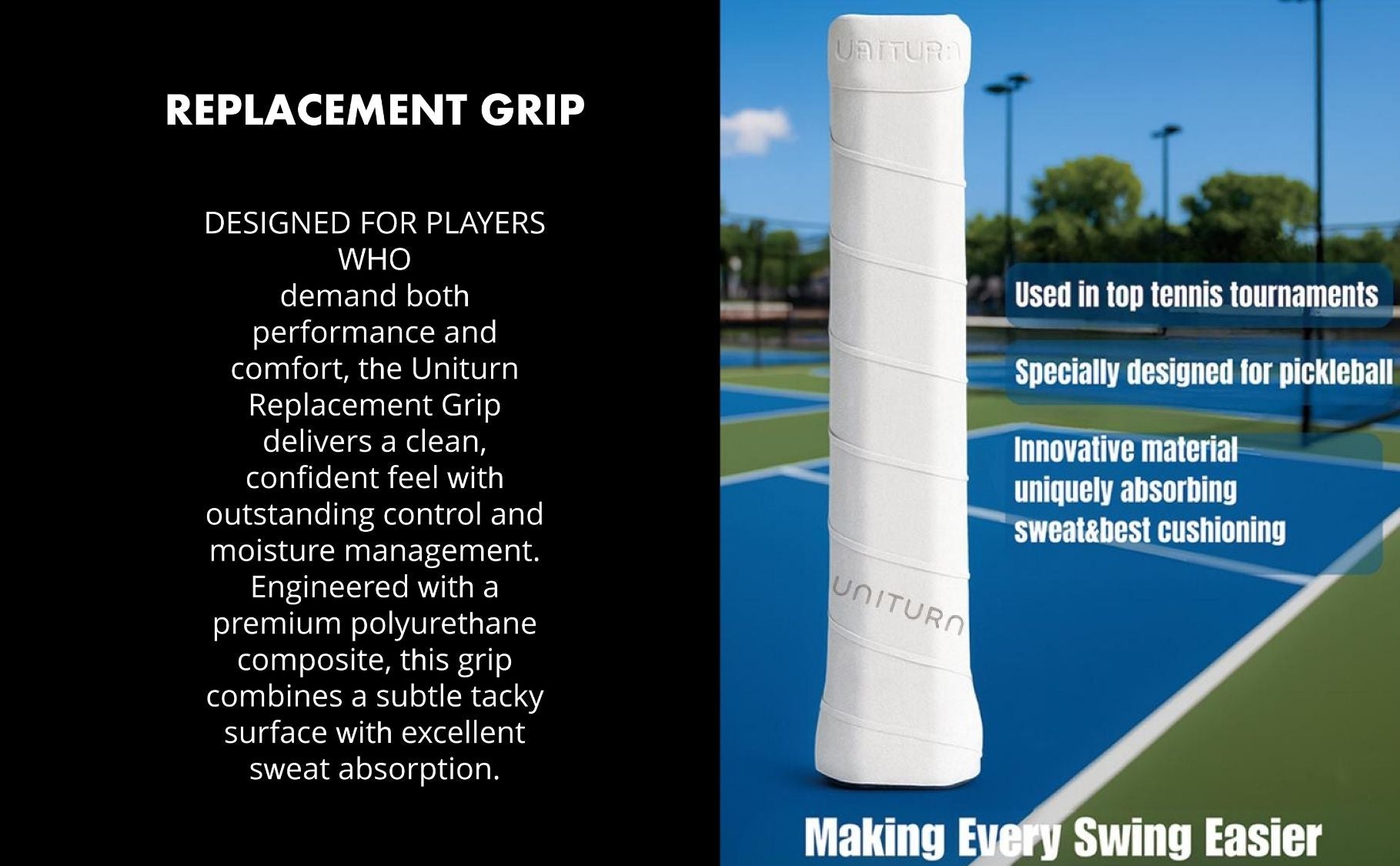 UNITURN Comfort Pickleball Replacement Grip - 1.8mm - PU Wrap, High-Tack Non-Slip Paddle Grip for Shock Absorption & Precision Control - 16.5g Stable Foundation