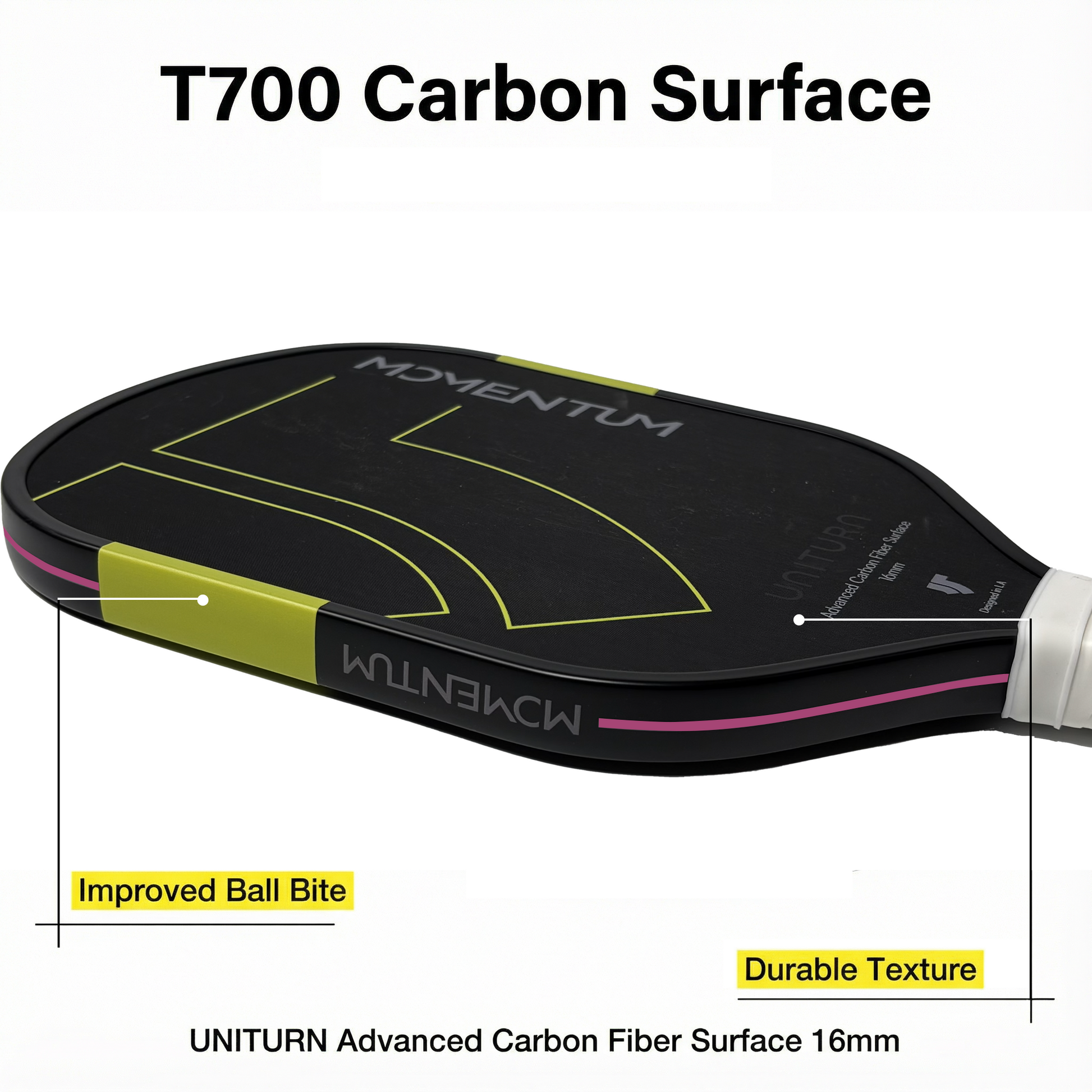 Uniturn Momentum Pickleball Paddle | T700 Raw Carbon Fiber | 16mm Control Core - Pink Series